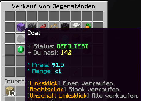 • Mit Rechtsklick kann man einen Stack aus dem Lager verkaufen