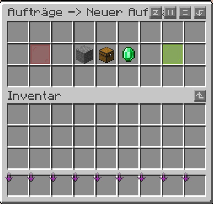 Mit dem Steinblock wählt ihr das Item für den Auftrag aus. (Es öffnet sich eine Übersicht aller Items)